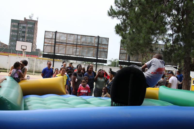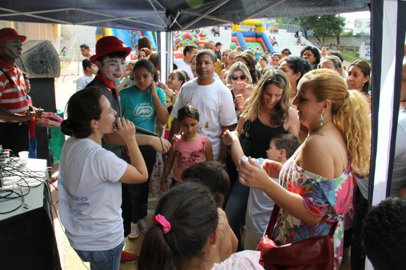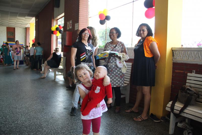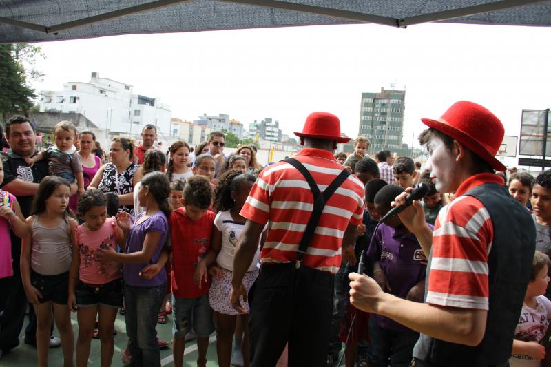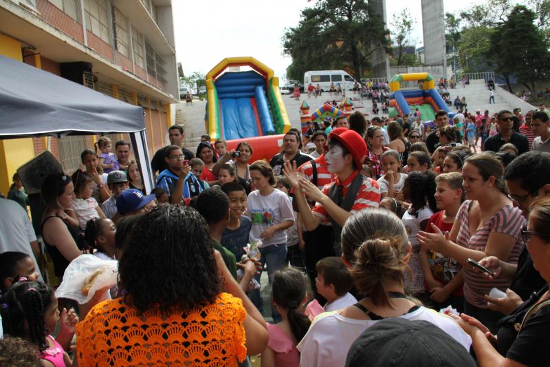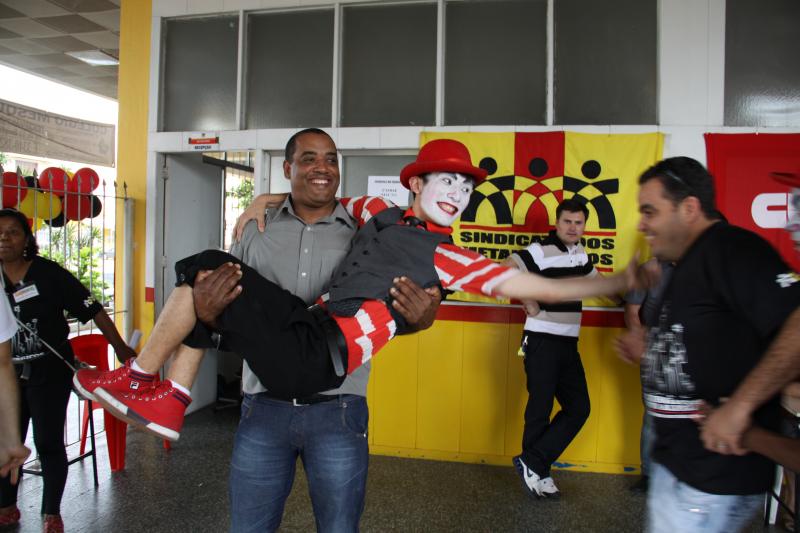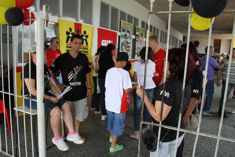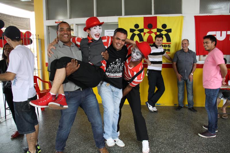 Festa do dia da Criança 2012 Festa do Dia das Crianças fez a alegria da garotada na Escola Mesquita Muitos sorrisos e aquela algazarra que caracteriza criançada unida e feliz. A frase e as fotos nestas duas páginas ilustram muito bem a alegria da garotada que participou da Festa do Dia da Criança dos Metalúrgicos, que neste ano aconteceu uma semana depois, no Domingo, 21 de outubro, porque o dia 12 caiu num feriadão. E o lugar não poderia ser mais adequado: a Escola Mesquita, palco de quase 50 anos de convivência com meninos e meninas, filhos ou netos de trabalhadores e trabalhadoras metalúrgicas. Foi mais uma tarde perfeita. Quem inscreveu antecipadamente e compareceu com suas crianças, voltou pra casa no final da tarde com a certeza de que “valeu a pena ter vindo!". Sol, calor, muitas crianças e pais sorridentes, bastante espaço para se divertir com os palhaços e com os brinquedos, muita dança, música, refrigerantes e guloseimas (picolé, cachorro-quente, algodão doce, churros etc). Tudo conspirou para aquele domingo ser o feliz dia das crianças. No final, cada criança ainda recebeu um kit contendo guloseimas diversas, doadas por dirigentes e funcionários do Sindicato dos Metalúrgicos. Segundo a comissão organizadora, cerca de 1.200 pessoas participaram da festa, entre elas aproximadamente 800 crianças. O evento iniciou às 14 horas e terminou quase ao anoitecer. A festa foi um sucesso de público e de atrações. Ninguém se machucou, todos saíram bem alimentados, satisfeitos e felizes, principalmente as crianças, filhos ou netos de trabalhadores e trabalhadoras metalúrgicas. |