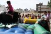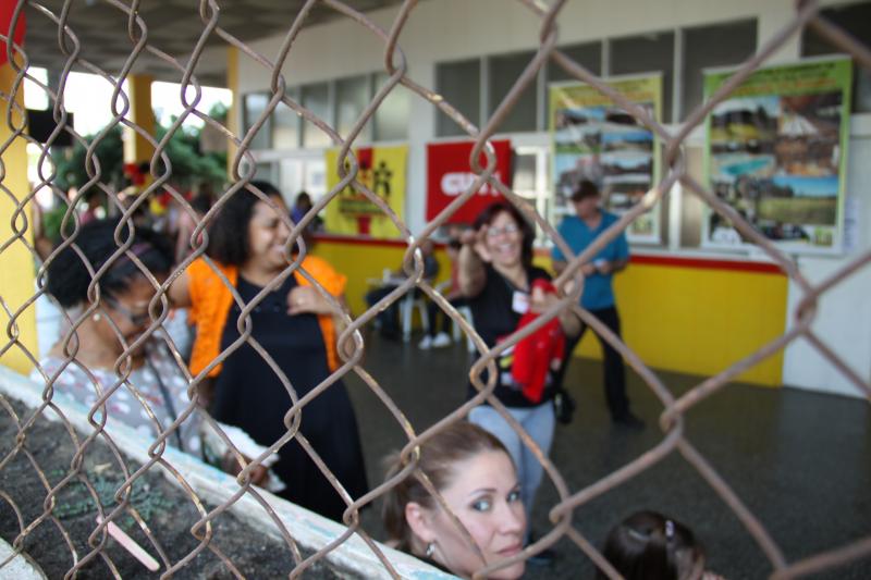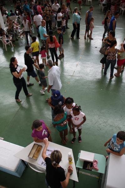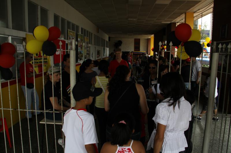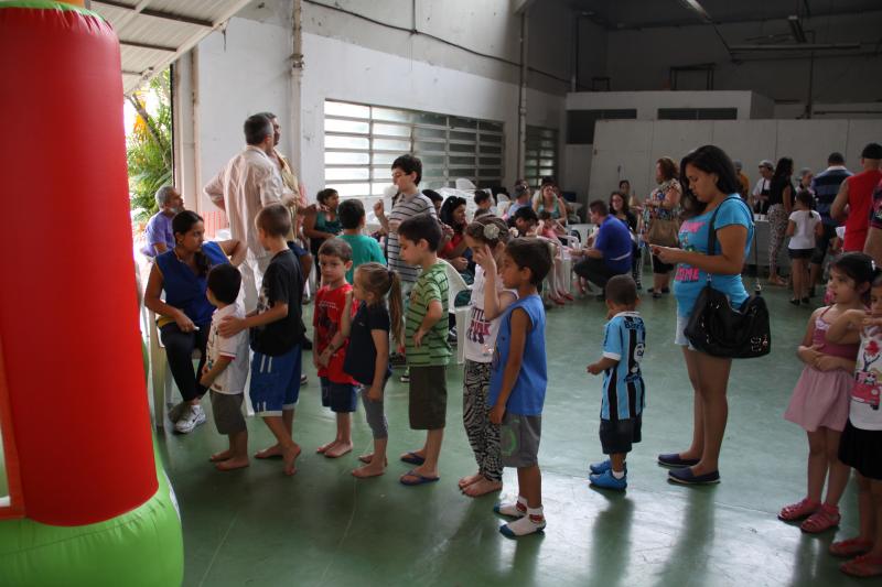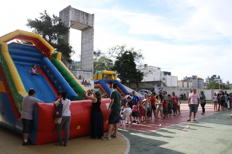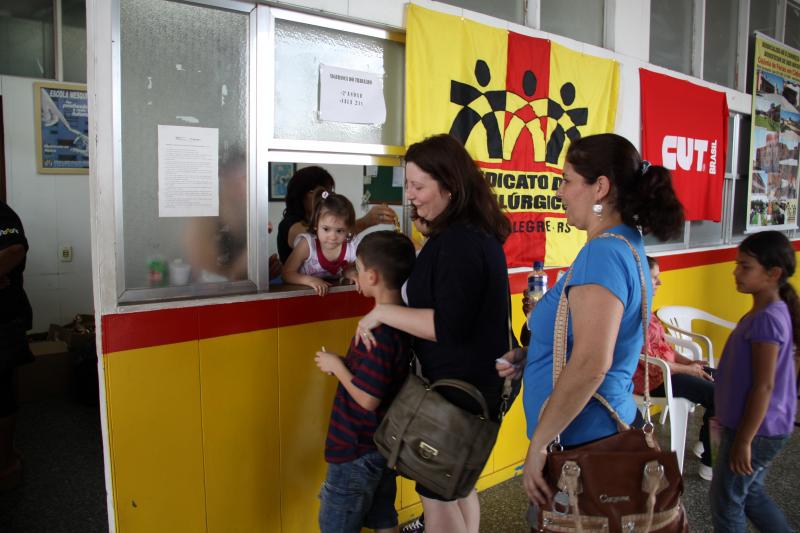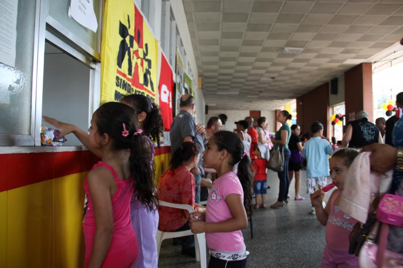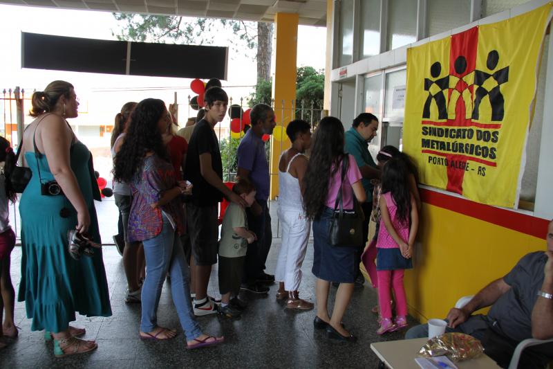 Festa do dia da Criança 2012 Festa do Dia das Crianças fez a alegria da garotada na Escola Mesquita Muitos sorrisos e aquela algazarra que caracteriza criançada unida e feliz. A frase e as fotos nestas duas páginas ilustram muito bem a alegria da garotada que participou da Festa do Dia da Criança dos Metalúrgicos, que neste ano aconteceu uma semana depois, no Domingo, 21 de outubro, porque o dia 12 caiu num feriadão. E o lugar não poderia ser mais adequado: a Escola Mesquita, palco de quase 50 anos de convivência com meninos e meninas, filhos ou netos de trabalhadores e trabalhadoras metalúrgicas. Foi mais uma tarde perfeita. Quem inscreveu antecipadamente e compareceu com suas crianças, voltou pra casa no final da tarde com a certeza de que “valeu a pena ter vindo!". Sol, calor, muitas crianças e pais sorridentes, bastante espaço para se divertir com os palhaços e com os brinquedos, muita dança, música, refrigerantes e guloseimas (picolé, cachorro-quente, algodão doce, churros etc). Tudo conspirou para aquele domingo ser o feliz dia das crianças. No final, cada criança ainda recebeu um kit contendo guloseimas diversas, doadas por dirigentes e funcionários do Sindicato dos Metalúrgicos. Segundo a comissão organizadora, cerca de 1.200 pessoas participaram da festa, entre elas aproximadamente 800 crianças. O evento iniciou às 14 horas e terminou quase ao anoitecer. A festa foi um sucesso de público e de atrações. Ninguém se machucou, todos saíram bem alimentados, satisfeitos e felizes, principalmente as crianças, filhos ou netos de trabalhadores e trabalhadoras metalúrgicas. |