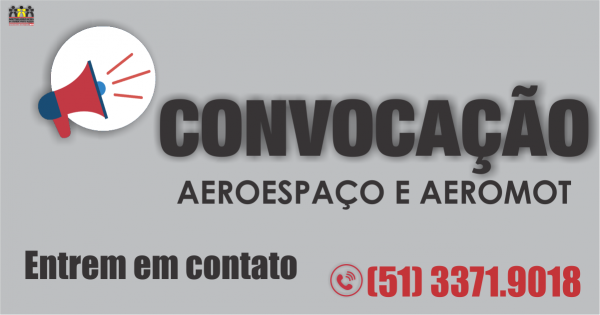 CONVOCAÇÃO - AEROESPAÇO E AEROMOT . 04/07/2018 ![]() O Sindicato dos Metalúrgicos de Porto Alegre está convocando os funcionários e ex-funcionários das empresas AEROESPAÇO SERVIÇOS E REPRESENTAÇÕES LTDA. E AEROMOT INDÚSTRIA MECÂNICO-METALÚRGICA, que estão abrangidos pelos processos trabalhistas número (0109000-60.2009.5.04.0008) referente ao FGTS e (0111600-60.2009.5.04.0006) referente a salários atrasados. Esses trabalhadores e trabalhadoras devem entrar em contato com o sindicato pelo número (51) 3371.9018 e falar com o setor financeiro. Veja também |