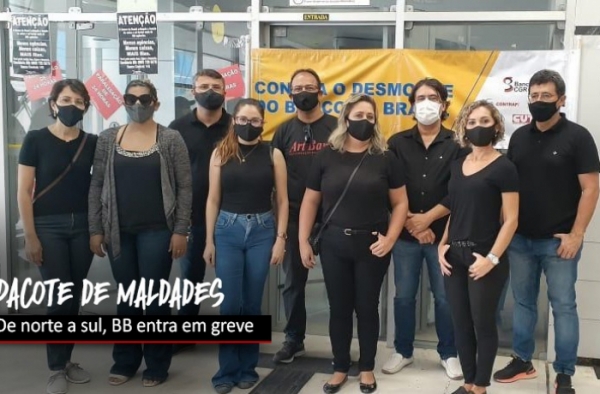 De norte a sul do país trabalhadores do BB paralisam contra reestruturação Segundo os organizadores da greve, a maior adesão foi dos caixas do banco que atingiu cerca de 80% da categoria, que será a mais afetada com as demissões previstas na instituição financeira 29/01/2021 Contraf/CUT ![]() Agências, postos de atendimento, escritórios e outras unidades do Banco do Brasil pararam suas atividades, nesta sexta-feira (29), contra o plano de reestruturação da direção da instituição. O movimento alcançou todo o país, em um sinal da rejeição por parte dos funcionários do plano de restruturação da direção do banco, que prevê 5 mil demissões e fechamento de centenas de agências, postos e escritórios do BB. Segundo os organizadores da greve, a maior adesão foi dos caixas do banco que atingiu cerca de 80% da categoria, que será a mais afetada com as demissões previstas na instituição financeira. A paralisação ocorreu tanto nas capitais e grandes cidades, como em municípios do interior. Logo pela manhã foram registradas paralisações em cidades como Lagoa Santa (MG), Catanduva (SP), Divinópolis (MG), Passo Fundo (RS), Rolante (RS), Parobé (RS), Igrejinha (RS), Campina Grande (PB), Blumenau (SC), Rio Grande (RS), Macaé (RJ), Dourados (MS), Umuarama (PR), Assis Chateaubriand (PR), Cruzeiro do Oeste (PR), Campos de Goytacazes (RJ), Paranavaí (PR), Taubaté (SP), Olinda (PE), Paulista (PE), Igarassu (PE), Arcoverde (PE), Gravatá PE), Vitória de Santo Antão (PE), Apucarana (PR), Borborema (SP). Uberaba (MG), Mogi das Cruzes (SP) e Juiz de Fora (MG), Assis (SP), Cândido Mota (SP), Paraguaçu Paulista (SP) e Palmital (SP), Alta Floresta (MT), Sinop (MT), Sorriso (MT), Lucas do Rio Verde (MT), Pontes e Lacerda MT). “A paralisação no dia de hoje foi muito boa. Muitos bancários entenderam a importância de cruzar os braços. Não foi uma paralisação contra o nosso trabalho, mas para cobrar respeito e dignidade por parte da direção do Banco do Brasil”, explicou o coordenador nacional da Comissão de Empresa dos Funcionários do Banco do Brasil (CEBB), João Fukunaga. Além da paralisação, houve também um tuitaço com a hashtag #MeuBBvalemais. Negociação Na semana que vem, será avaliada a mobilização e sua continuidade, caso a direção do Banco do Brasil se recuse a dialogar com seus funcionários sobre eventuais mudanças no banco. “A Comissão de Empresa vai se reunir na próxima semana, junto com o Comando Nacional, para avaliarmos como foram os atos no Brasil inteiro. Vamos montar um novo calendário de lutas caso o banco não nos chamar para a negociação. Não descartamos a possibilidade de greve dos funcionários do Banco do Brasil”, afirmou o coordenador da CEBB. Para ver as fotos da paralisação desta sexta-feira, clique aqui