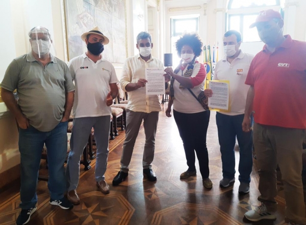 Após marcha fúnebre, CUT-RS e centrais entregam carta ao prefeito de Porto Alegre em defesa da vida No texto, as entidades reafirmam que acima de tudo está a vida e em defesa dela devem ser observadas e seguidas as orientações da ciência 01/03/2021 ![]() O colapso na saúde, a falta de vacinas, as internações em alta e o descaso dos governos federal, estadual e municipal para salvar vidas foram denunciados pela CUT-RS na manhã desta segunda-feira (01/03), no centro de Porto Alegre, Após um cortejo simbólico com caixão e marcha fúnebre, as centrais sindicais entregaram uma carta ao prefeito Sebastião Melo (MDB), intitulada “Manifesto das Centrais Sindicais do RS em Defesa da Vida”. No texto, as entidades “reafirmam que acima de tudo está a vida e em defesa dela devem ser observadas e seguidas as orientações da ciência” e apresentam um conjunto de nove propostas, como “a necessidade da testagem em massa gratuita e a compra urgente de vacinas para barrar o avanço da pandemia”. As centrais também exigem “da gestão municipal, mais propriamente da autoridade do prefeito, a imediata decretação de lockdown (com período de duração recomendado pela ciência), como instrumento comprovadamente capaz de salvar vidas”. Propostas apresentadas ao prefeito 1) Aquisição urgente de vacinas pelo município; 2) Instalação de postos públicos de testagem; 3) Ampliar a oferta de transporte coletivo cumprindo os protocolos rígidos e necessários, visando priorizar o deslocamento com segurança dos trabalhadores e trabalhadoras dos serviços essenciais; 4) Instalação de hospitais de campanha para serviços de atenção básica, desafogando o sistema e destinando a estrutura convencional para atendimento dos casos de COVID; 5) Que Vossa Excelência se agregue na defesa do retorno do auxílio emergencial federal no valor de R$ 600,00 para socorrer as famílias mais vulneráveis; 6) Criação do auxílio municipal emergencial nos moldes em que foi instituído pela prefeitura de Belém-PA, podendo o valor correspondente ser distribuído na forma de cestas básicas; 7) Exigir do Governo Federal a implementação de políticas de geração de emprego e Renda; 8) Defender publicamente a quebra temporária das patentes para viabilizar a universalização da produção de imunizante; 9) Cumprimento da contrapartida que corresponde ao município no PNAE (Programa Nacional da Alimentação Escolar) e a execução urgente da distribuição da quota de alimentos sob sua responsabilidade.
