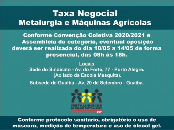 Taxa Negocial - Metalurgia e Máquinas Agrícolas