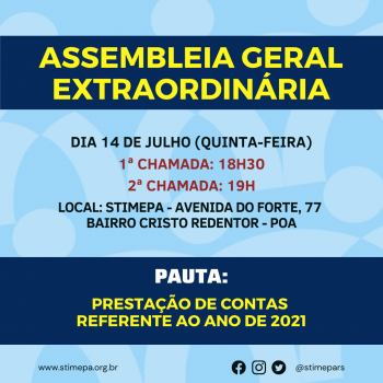 Sindicato convoca assembleia extraordinária para prestação de contas Seguindo o compromisso de transparência com os investimentos da categoria, o Stimepa realiza assembleia de prestação de contas referente ao exercício contábil de 2021. 07/07/2022 Stimepa ![]() Seguindo o compromisso de manter a tradição CUTista de transparência quanto à aplicação e investimentos dos recursos financeiros obtidos por meio das contribuições pelas entidades sindicais, a direção do Sindicato dos Metalúrgicos convoca assembleia de prestação de contas referente ao ano de 2021. Veja também |