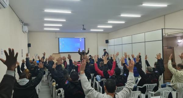 Por fim, ambas as prestações de contas (Escola e Sindicato) foram colocadas em votação separadamente, sendo aprovadas por unanimidade entre os trabalhadores e trabalhadoras presentes na assembleia. Veja também |