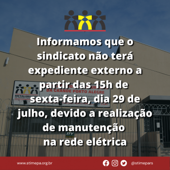 Sindicato terá expediente até as 15h desta sexta (29) para manutenção da rede elétrica Retornamos com atendimento a partir das 8h de segunda-feira (1º) 29/07/2022 Stimepa ![]() Retornamos com atendimento normal a partir de segunda (1º) Sindicato terá expediente até as 15h desta sexta (29) para manutenção da rede elétrica. Retornamos com atendimento a partir das 8h de segunda-feira (1º) Veja também |