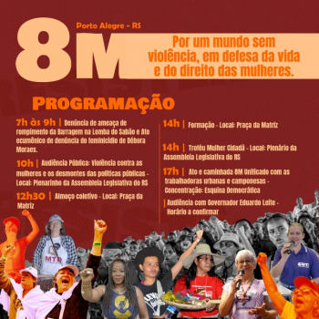 CUT-RS e centrais reforçam neste 8 de Março a defesa da vida e do direito das mulheres O tema que unifica as atividades no Rio Grande do Sul é Por um mundo sem violência, em defesa da vida e do direito das mulheres. 08/03/2023 ![]() Nessa quarta-feira, 8 de Março, Dia Internacional de Luta das Mulheres, a CUT, demais centrais sindicais e movimentos feministas e de mulheres farão atos em diversas cidades do país para chamar a atenção da sociedade sobre as desigualdades que potencializam as diversas formas de violência contra as mulheres, tanto no mercado de trabalho como em todos os espaços da vida. Veja abaixo onde tem ato e participe! Segundo a secretária da Mulher Trabalhadora da CUT Nacional, Juneia Batista, a convocação para participar dos atos vale para todas e todos que sabem da importância de todas as lutas que precisam ser feitas para que as mulheres tenham direito à vida, à liberdade e condições justas e dignas no ambiente de trabalho. Em 2023, após anos de retrocessos, nós começamos a respirar os ares da esperança de que mudanças importantes sejam implementadas e que a igualdade esteja no centro das ações governamentais, afirma Juneia, se referindo aos governos de direita e de extrama direita de Michel Temer (MDB) e Jair Bolsonaro (PL). Agora, com Lula na presidência, teremos a chance de retomar o caminho que vínhamos trilhando antes do golpe de 2016, contra Dilma Rousseff, para ter nosso espaço de direito na sociedade e darmos um basta para a violência contra a mulher, inclusive as pessoas trans, contra o machismo estrutural e contra o patriarcado, que ainda nos violentam todos os dias. - Juneia Batista A ideia foi bandeira da então candidata e hoje ministra Simone Tebet (Planejamento). Foi incorporada pela campanha do petista e deve sair do papel na próxima semana. Outra medida é a construção de Casas da Mulher Brasileira em todo o país. A ação faz parte do programa "Mulher Viver, Sem Violência" e será feita em parceria entre o Ministério das Mulheres e o Ministério da Justiça e Segurança Pública. A Casa da Mulher Brasileira é um programa que já existe desde o governo da ex-presidente Dilma Rousseff (PT). É um espaço público que concentra serviços especializados e multidisciplinares para o atendimento às mulheres vítimas violência, que vai desde o acolhimento até o serviço jurídico.